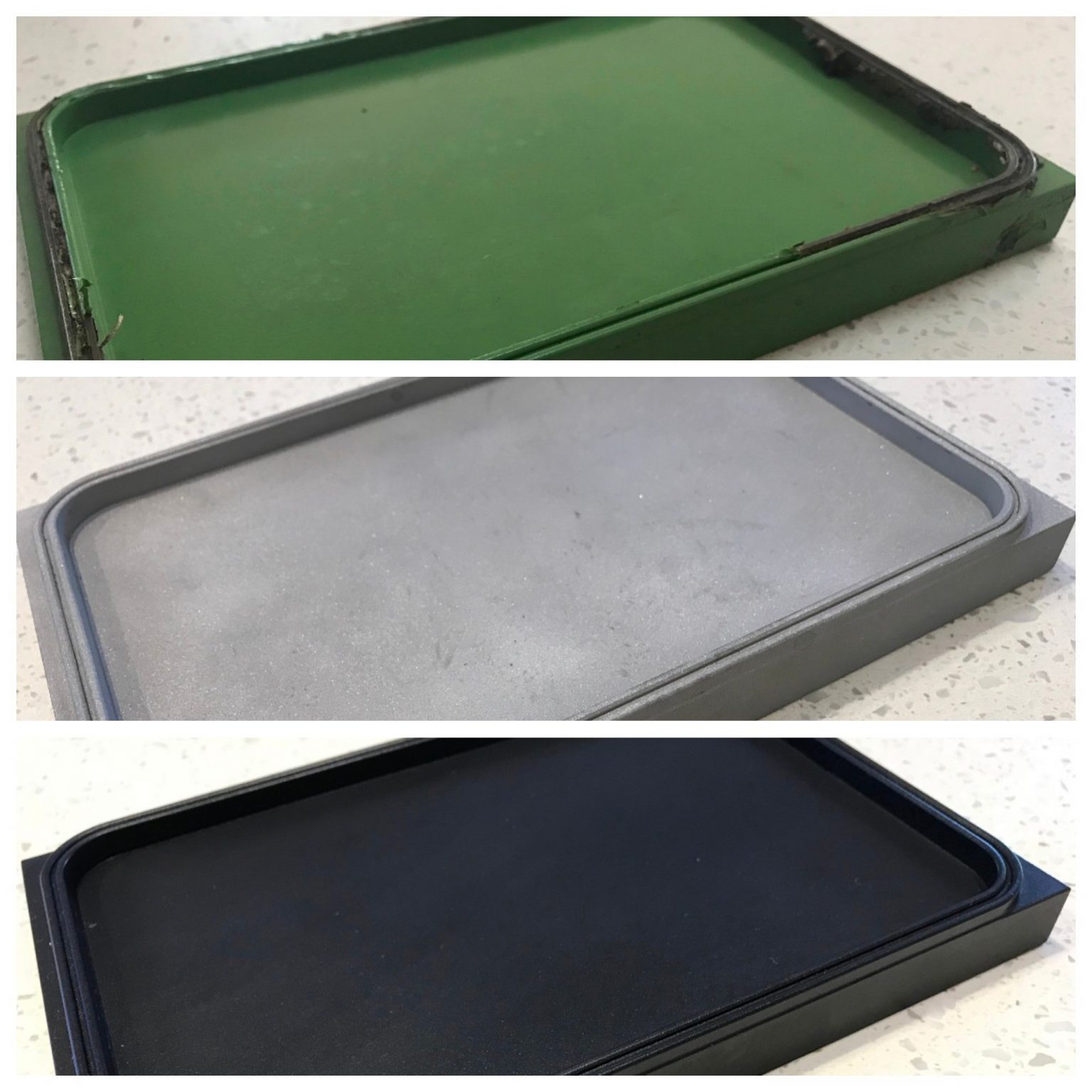- The product to be coated or re-coated is first Heat Cleaned at high temperature (+400 degrees C) to ensure there is no oil or grease present, as per the coating manufacturers specifications.